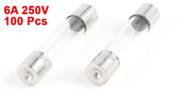 Product Name Glass Tube Fuses Quantity 100±2% Pcs Features Fast Blow(F) Low Breaking Capacity(L) Rated Voltage 250V Rated Current 6A Dimension 6 x 30mm/ 0.24" x 1.2" (D*L) Material Glass Color Clear, Silver Tone Weight 124g Package Content 100 x Glass Tube Fuses - Reviews