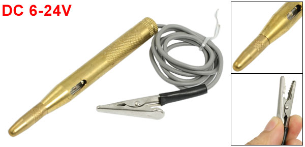 Product Name Car Voltage Tester Voltage Tester Range DC 6-24V Material Metal, Plastic Wire Length 62cm/24.4" Tester Size 10.4 x 1cm/ 4.1" x 0.4"(L*D) Indicator Light Color Yellow Color Gold Tone, Silver Tone, Gray Net Weight 32g Package Content 1 x Voltage Tester