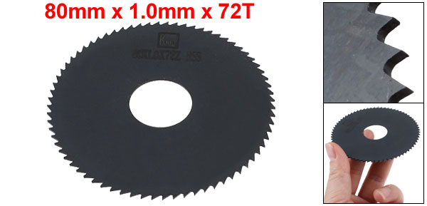 Product Name Saw Blade Main Material HSS Color Black Cutting Diameter 80mm / 3.15" Thickness 1mm / 0.039" Teeth Quantity 72T Arbor Hole Diameter 22mm / 0.866" Net Weight 30g Package Content 1 x Saw Blade