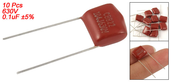 Product Name Metallized Polypropylene Film Capacitor Model CBB22 Dielectric Material Metallized Polypropylene Film Withstand Voltage 630V Capacitance 0.1uF Capacitance Tolerance ±5% Lead Spacing 10mm / 0.39" Total Size (Each) 32 x 11 x 5mm / 1.26" x 0.43" x 0.2" (L*W*T) Weight 9g Color As Picture Shown Package Content 10 x Metallized Polypropylene Film Capacitors - Reviews