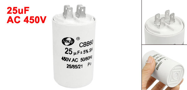 Product Name Motor Capacitor Material Polypropylene Film Model CBB60 Capacitance 25uF Tolerance ±5% Rated Voltage AC 450V Frequency 50/60Hz Body Size 42 x 70mm/ 1.3" x 2.8" (D*H) Color White Weight 102g Package Content 1 x Motor Capacitor - Reviews