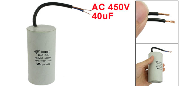 Product Name Motor Capacitor Housing Material Plastic Dielectric Material Polypropylene Model CBB60 Capacitance 40uF Tolerance ±5% Rated Voltage 450VAC Max Temperature +70°C Frequency 50Hz Body Size 4.9 x 9.7cm / 1.9" x 3.8" (D * H) Wire Size(Approx.) 12.5 x 0.58cm / 4.9" x 0.2" (L * Max.D) Color Gray, Black Weight 158g Package Content 1 x Motor Capacitor - Reviews