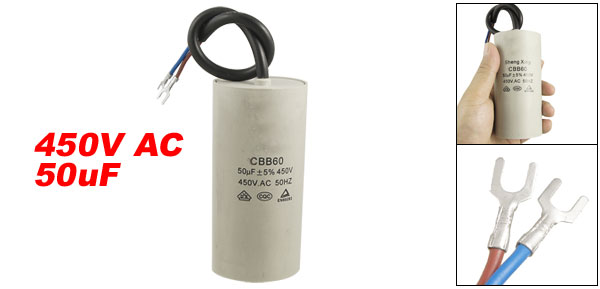Product Name Motor Run Capacitor Model CBB60 Material Polypropylene Film Rated Capacitance 50uF Tolerance 5% Rated Frequency 50Hz Rated Voltage 450V AC Cylinder Size 10.5 x 4.8cm/ 4.1" x 1.9"(H*D) Lead Length 21cm/ 8.3" Pins Size 0.9 x 0.7cm/ 0.35" x 0.28"(L*W) Pin Spacing 0.58cm/ 0.228" Main Color Gray Weight 199g Package Content 1 x Motor Run Capacitor - Reviews