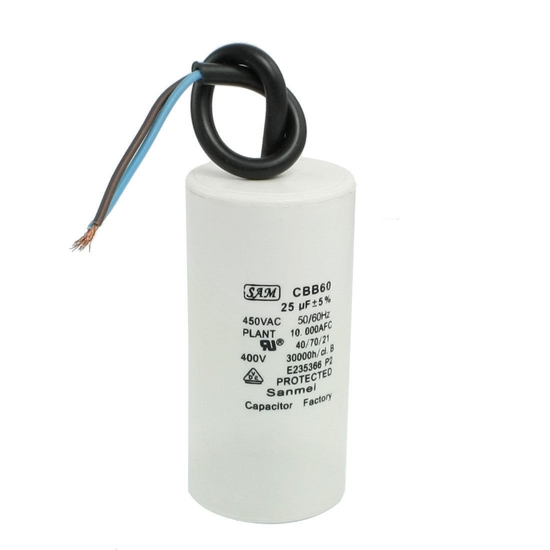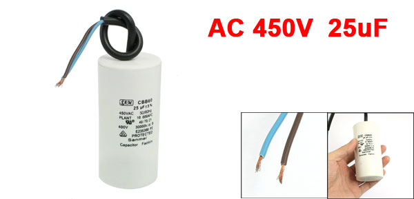 Product Name Motor Run Capacitor Model CBB60 Material Polypropylene Film Rated Capacitance 25uF Tolerance 5% Rated Frequency 50/60 Hz Rated Voltage 450V AC Cylinder Size 9.2 x 4.4cm/ 3.6" x 1.7"(H*D) Wire Length 18cm/ 7.1" Main Color White Weight 129g Package Content 1 x Motor Run Capacitor - Reviews