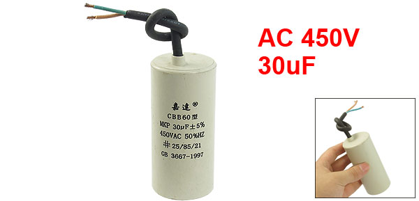 Product Name Motor Capacitor Housing Material Plastic Dielectric Material Metallized Polypropylene Film Model CBB60 Capacitance 30uF Tolerance ±5% Ambient Temperature 25/85/21 Rated Voltage 450VAC Frequency 50/60Hz Body Size 44 x 97cm / 1.7" x 3.8" (D * H) Wire Length 14cm/5.5" Color Gray Net Weight 145g Package Content 1 x Motor Capacitor - Reviews