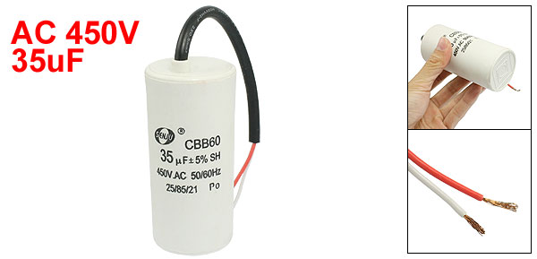 Product Name Motor Run Capacitor Model CBB60 Material Polypropylene Film Rated Capacitance 35uF Tolerance +/-5% Rated Frequency 50/60 Hz Rated Voltage 450V AC Cylinder Size 9.5 x 5cm/ 3.7" x 2"(L*D) Color White Weight 172g Package Content 1 x Motor Run Capacitor - Reviews