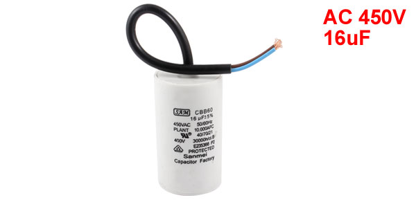 Product Name Polypropylene Film Capacitor Housing Material Plastic Dielectric Material Polypropylene Model CBB60 Capacitance 16uF Tolerance ±5% Rated Voltage 450VAC Frequency 50/60Hz Body Size 3.8 x 7cm/ 1.5" x 2.76" (D*H) Cable Length 17cm/ 6.7" Color White, Blue,Red,Black Weight 80g Package Content 1 x Polypropylene Film Capacitor - Reviews