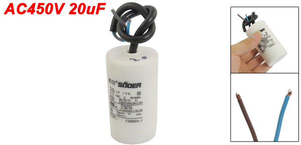 Product Name Polypropylene Film Capacitor Housing Material Plastic Dielectric Material Polypropylene Model CBB60A-1 Capacitance 20uF Tolerance ±5% Rated Voltage 450VAC Frequency 50/60Hz Body Size 3.9 x 7cm/ 1.54" x 2.76" (D*H) Cable Length 17cm / 6.7" Color White, Black Weight 85g Package Content 1 x Polypropylene Film Capacitor - Reviews