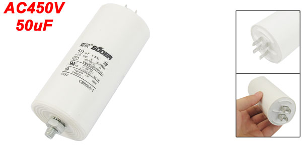 Product Name Motor Capacitor Model CBB60A-1 Dielectric Material Polypropylene Film Housing Material Plastic Capacitance 50µF Tolerance ±5% Rated Frequency 50/60Hz Rated Voltage AC 450V Size 4.8 x 13.3cm/ 1.89" x 5.24" (Dia.*H) Thread Diameter 8mm/ 0.31" Color White Weight 181g Package Content 1 x Motor Capacitor - Reviews