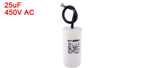 Product Name Motor Run Capacitor Model CBB60A-1 Rated Capacitance 25uF Tolerance ±5% Rated Voltage 450V AC Frequency 50/60Hz Body Size 8.6x 4.4cm / 3.4" x 1.7"(H*D) Wire Length 18cm / 7.1" Main Material Polypropylene Film, PVC Main Color Black, White Weight 126g Package Content 1 x Motor Run Capacitor - Reviews