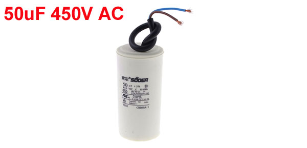 Product Name Motor Capacitor Housing Material Plastic Dielectric Material Polypropylene Model CBB60A-1 Capacitance 50uF Tolerance ±5% Rated Voltage 450V AC Frequency 50/60Hz Body Size 5 x 10cm / 2" x 3.9" (D * H) Wire Size(Approx.) 17.5 x 0.6cm /6.9" x 0.23" (L * Max.D) Color Black, White Weight 157g Package Content 1 x Motor Capacitor - Reviews