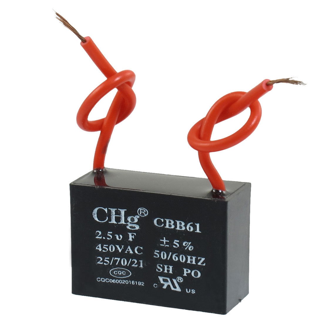 CBB61 2.5uF AC 450V Rectangle Wired Non Polar Motor Run Capacitor