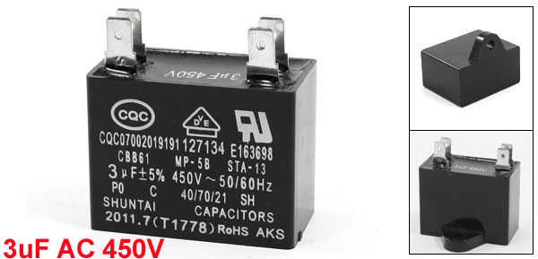 CBB61 4 Soldering Pins Polypropylene Film Fan Capacitor 3uF AC 450V