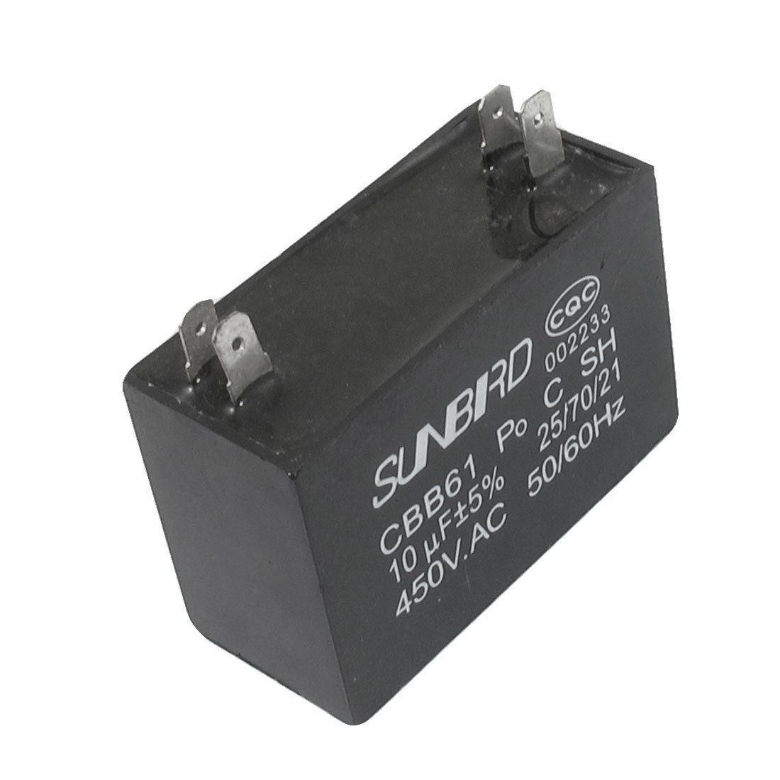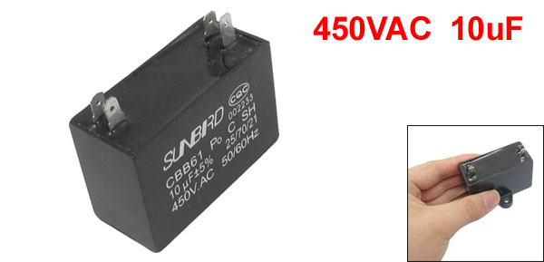 Product Name Capacitor Model CBB61 Dielectric Material Metallized Polypropylene External Material Plastic Rated Capacitance 10uF Tolerance ±5% Rated Frequency 50/60Hz Rated Working Voltage 450VAC Pin Number 4 Mounting Hole Diameter 4.2mm / 0.16" Pin Size 8.2 x 4.8mm / 0.32" x 0.19" (L*W) Pin Spacing 40 x 4.8mm / 1.57" x 0.19" (L*W) Total Size(Approx) 5.8 x 3.7 x 4.8cm / 2.3" x 1.47" x 1.9" (L*W*H) Main Color Black Weight 70g Package Content 1 x Capacitor - Reviews
