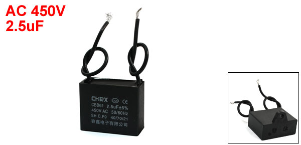 Product Name Motor Run Capacitor Model CBB61 Material Metalized Polypropylene Film Rated Capacitance 2.5uF Tolerance 5% Operating Temperature 40/70/21 Rated Frequency 50/60 Hz Rated Voltage 450V AC Size 3.7 x 1.6 x 3cm/ 1.5" x 0.6" x 1.2"(L*W*H) Lead Length 13cm/ 5.1" Weight 20g Package Content 1 x Motor Run Capacitor  - Reviews