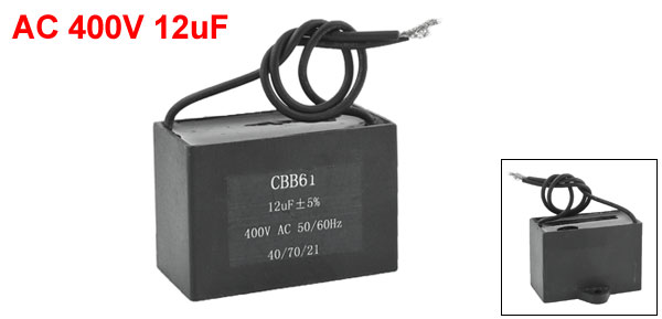 CBB61 AC 400V 12uF 5% Two Black Wire Motor Running Capacitor