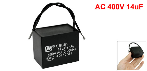 Terminal Wire Ambient Temperature 40/70/21 Rated Capacitance 14uF Tolerance +/-5% Rated Frequency 50/60Hz Rated Voltage 400V AC Size 4.6 x 3.8 x 3.2cm / 1.8" x 1.5" x 1.3" (L*W*T) Wire Length 8cm / 3.2" Install Bore Diameter 0.5cm / 0.2" Main Color Black Weight 72g Package Content 1 x Motor Capacitor - Reviews