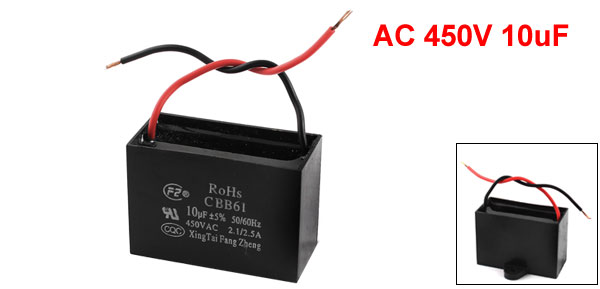 Product Name Motor Capacitor Model CBB61 Color Black External Material Plastic Dielectric Material Metalized Polypropylene Film Rated Capacitance 10uF Tolerance ±5% Rated Frequency 50/60Hz Rated Voltage AC 450V Ambient Temperature 25/70/21 Body Size 60 x 28 x 42mm/ 2.4" x 1.1" x 1.6"(L*W*T) Fixing Hole Diameter 5mm/0.20" Cable Length 10cm/ 4.0" Net Weight 66g Package Content 1 x Motor Capacitor - Reviews
