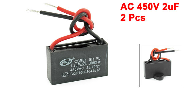 CBB61 AC 450V 1.2uF Two Wired Ceiling Fan Motor Run Capacitor 2 Pcs