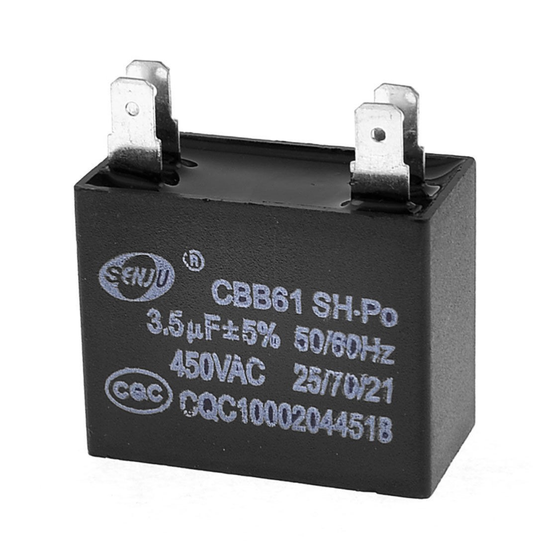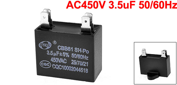 Product Name Motor Run Capacitor Model CBB61 Material Polypropylene Film Rated Capacitance 3.5uF Tolerance ±5% Rated Frequency 50/60 Hz Rated Voltage 450V AC Overall Size 3.7 x 3.4 x 2.5cm/ 1.5" x 1.3" x 1"(L*W*H) Mount Hole Dia 5mm/ 0.2" Pin Size 8 x 5mm/ 0.3" x 0.2"(L*W) Pin Spacing 22 x 5mm/ 0.9" x 0.2"(L*W) Main Color Black Net Weight 16g Package Content 1 x Motor Run Capacitor - Reviews