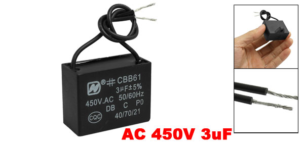 CBB61 AC 450V 3uF 50/60 Hz Wire Motor Run Capacitor