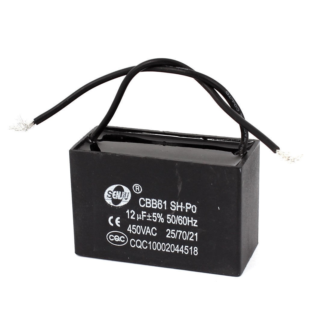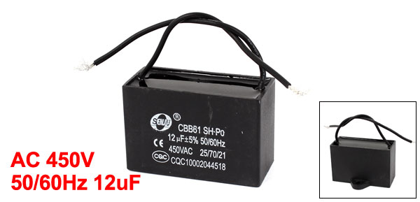 CBB61 AC 450V 50/60Hz 12uF Ceiling Fan Wired Motor Run Capacitor Black