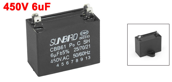 CBB61 AC450V 6uF Rectangle Shaped Air Conditioner Wall Fan Motor Run Capacitor