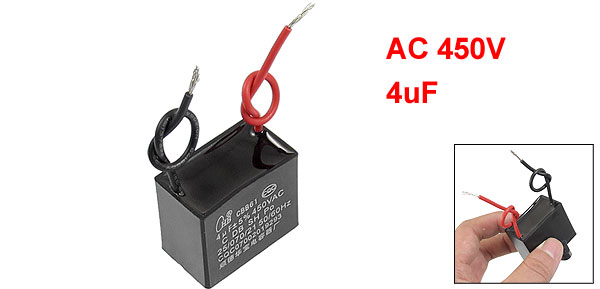 Model CBB61 External Material Plastic Dielectric Material Polypropylene Film Rated Capacitance 4uF Tolerance +/-5% Rated Frequency 50/60Hz Rated Voltage AC 450V Body Size 3.8 x 3.2 x 2.2cm/ 1.5" x 1.3" x 0.9"(L*W*T) Mount Hole Diameter 4.5mm/0.2" Cable Length 9cm/ 3.5" Net Weight 32g Package Content 1 x Motor Run Capacitor - Reviews
