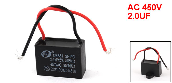 Product Name Motor Run Capacitor Model CBB61 Rated Capacitance 2.0uF Tolerance ±5% Rated Voltage AC 450V Frequency 50/60Hz Body Size 3.8 x 2.7 x 1.6cm / 1.5" x 1" x 0.6"(L*W*T) Wire Length 8cm / 3" Main Material Polypropylene Film, PVC Main Color Black Weight 23g Package Content 1 x Motor Run Capacitor - Reviews