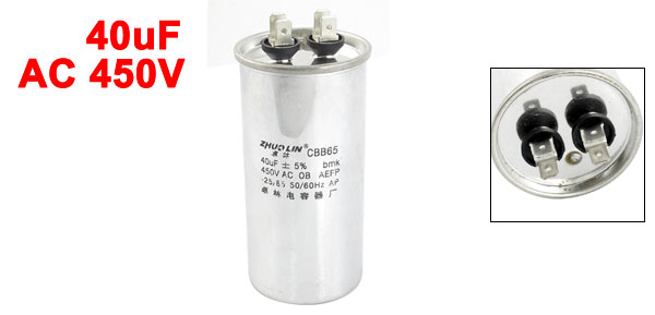 Product Name Motor Capacitor Material Polypropylene Model CBB65 Capacitance 40uF Rated Voltage AC 450V Tolerance ±5% Frequency 50/ 60Hz Body Dimension 10.5 x 5cm/ 4" x 2"(H*D) Total Length 11.8cm/ 4.6" Color Silver Tone Net Weight 175g Package Content 1 x Motor Capacitor - Reviews