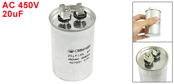 Product Name Capacitor Housing Material Metal Dielectric Material Metallized Polypropylene Film Model CBB65 Capacitance 20uF Tolerance ± 5% Rated Voltage AC 450V Operating Temperature 40/70/21 Frequency 50/60Hz Total Size 4.9 x 7.6cm/ 1.9'' x 3'' (D*H) Color Silver Tone Weight 130g Package Content 1 x Air Conditioner Capacitor - Reviews