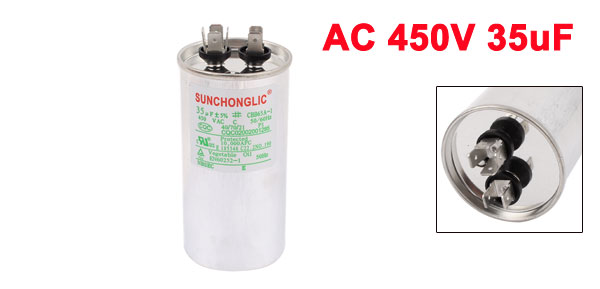Product Name Motor Capacitor Model No. CBB65A-1 Dielectric Material Metallized Polypropylene Film Housing Material Metal Capacitance 35uF Tolerance ±5% Rated Voltage AC 450V Frequency 50/60Hz Body Dimension 5 x 10cm / 2" x 4" (D * H) Operating Temperature 40/70/21 Color Silver Tone Weight 223g Package Content 1 x Motor Capacitor - Reviews
