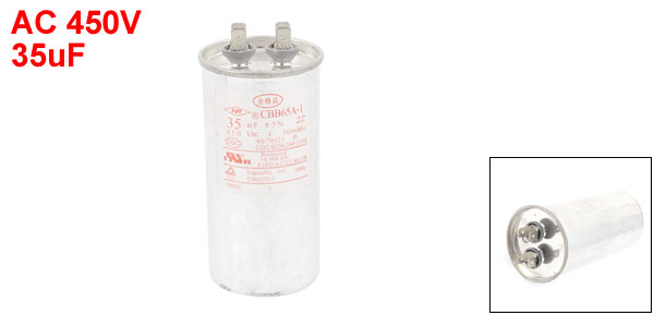 Product Name Polypropylene Film Capacitor Housing Material Metal Dielectric Material Polypropylene Film Model CBB65A-1 Capacitance 35uF Tolerance +/-5% Rated Voltage AC 450V Frequency 50/60Hz Operating Temperature 40/70/21 Body Size 5 x 10cm/ 2" x 4" (D*H) Total Length 11.5cm/4.5" Color Silver Tone Weight 196g Package Content 1 x Polypropylene Film Capacitor - Reviews
