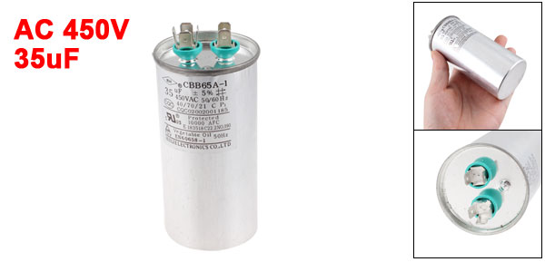 Product Name Capacitor Housing Material Metal Model CBB65A-1 Capacitance 35uF Tolerance +/-5% Rated Voltage AC 450V Frequency 50/60Hz Body Size 5 x 10cm/ 2" x 3.9" (D*H) Overall Length 11.5cm / 4.5" Color Silver Tone Weight 196g Package Content 1 x Air Conditioner Capacitor - Reviews