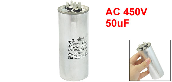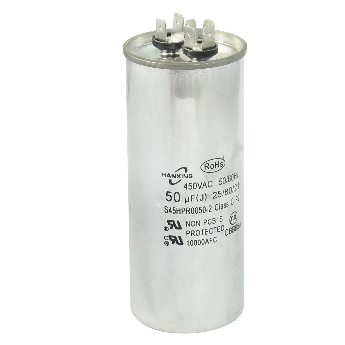 Product Name Motor Capacitor Housing Material Metal Dielectric Material Metallized Polypropylene Film Model CBB65A Capacitance 50uF Tolerance ±5% Rated Voltage 450VAC Frequency 50/60Hz Operating Temperature 25/80/21 Body Size 50 x 125mm/2" x 4.9"(D * H) Color Silver Tone Net Weight 241g Package Content 1 x Motor Capacitor - Reviews