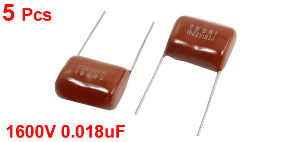 Product Name Metallized Polypropylene Film Capacitor Model No. CBB81 Type Radial Lead Withstand Voltage 1600V Capacitance 0.018uF(183J) Capacitance Tolerance ±5% Lead Spacing 19mm /0.7" Lead Size 24 x 0.8mm / 0.9" x 0.03" (L*D) Body Size 21 x 10 x 18 mm / 0.8" x 0.4" x 0.7" (L*W*T) Dielectric Material Metallized Polypropylene Film Net Weight 22g Color Red Package Content 5Pcs x Metallized Polypropylene Film Capacitors - Reviews