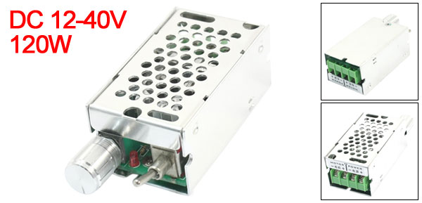 Product Name PWM DC Reversible Motor Speed ControllerModel CCM2NJ Input Voltage DC 12-40V Rated Current 3A Output Power(Max.) 120W PWM Frequency 15kHz PWM Duty Cycle 10%-100% Size 94 x 40 x 30mm/ 3.7" x 1.6" x 1.2" (L*W*H) Material Alloy, Electronic Parts Main Color Silver Tone, Blue Wieght 74g Package Content 1 x PWM DC Reversible Motor Speed Controller - Reviews