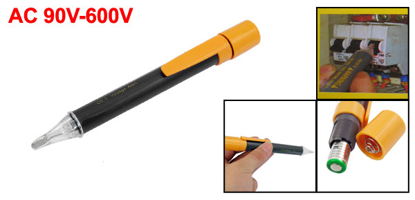 DetailsCD-1 Gray Plastic Casing Non Contact AC 90V-600V Voltage Alert Detector  Product Name Non Contact AC Voltage Detector Material Plastic, Electric Parts Powered by 2 x 1.5V AAA batteries (not included) Voltage AC 90V-600V Total Size (Approx.) 16 x 1.5cm / 6.3" x 0.6" (L*D) Main Color Gray, Yellow LED Light Color Red Net Weight 43g Package Content 1 x AC Voltage Detector