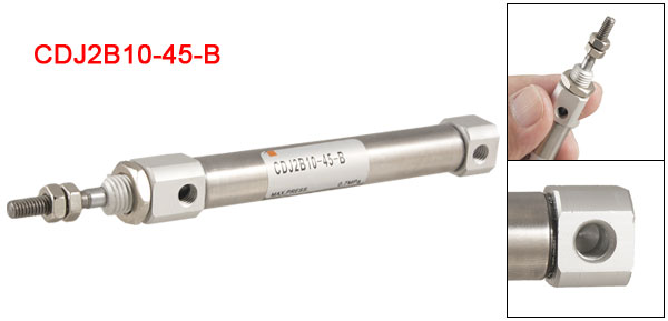 Product Name Air Cylinder Model CDJ2B10-45-B Action Double Action Rod Type Single Rod Bore 10mm Stroke 45mm Rod Diameter 4mm Rod Thread Diameter 3.8mm Thread Hole Diameter 4mm Max Press 0.7Mpa Overall Size(Approx) 119 x 12 x 12mm/ 4.7" x 0.5" x 0.5" (L*W*H) Material Aluminum Alloy Weight 37g Package Content 1 x Air Cylinder - Reviews