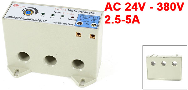 Product Name Motor Protector Type CDS-11 Reset Time 60 ± 10s Work Mode Uninterrupted Work Mode Applicable Voltage AC 24V - 380V / 45 ~ 60 Hz Current Adjustment Scope 2.5-5A Applicable Motor Power 1.5 - 2.5KW Wire Hole Dia. 11mm/0.43" Control Current of Output Interface 1A/380Vac Environment Temperature -10C - +50C Relative Humidity <=90% Atmospheric Pressure 80Kpa~110Kpa Altitude no more than 200m Total Size 9.2 x 6.3 x 4.2cm/3.6" x 2.5" x 1.7"(L*W*H) Weight 168g Package Content 1 x Motor Protector