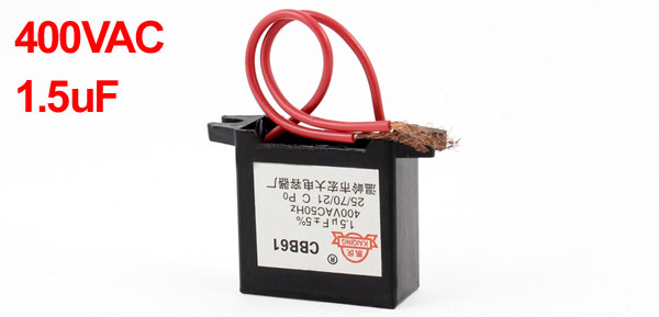 Ceiling Fan Capacitor CBB61 1.5uf MFD 400VAC 2 Red Wire 50Hz Black