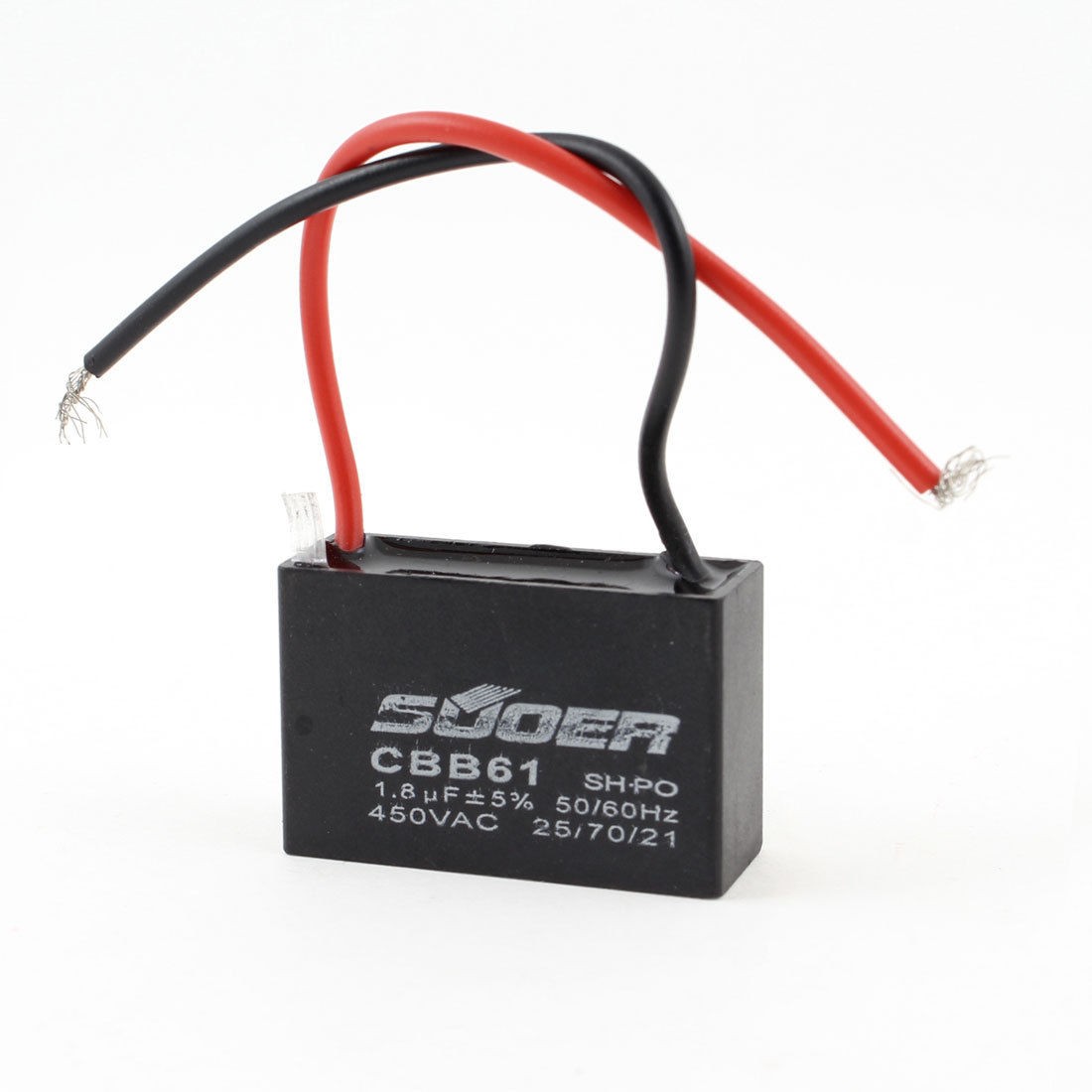 Terminal Wire Ambient Temperature 25/70/21 Rated Capacitance 1.8uF Tolerance +/- 5% Rated Frequency 50/60Hz Rated Voltage 450V AC Body Size 3.8 x 2.7 x 1.7cm / 1.5" x 1.1" x 0.7" (L*W*H) Wire Length 9cm / 3.5" Install Bore Diameter 0.5cm / 0.197" Main Color Black, Red Weight 19g Package Content 1 x Motor Run Capacitor - Reviews