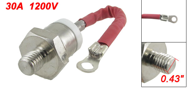 Product Name Rectifier Diode Model ZP30A Average Forward Current 30A Repetitive Peak Reverse Voltage(VRRM) 1200V Thread Diameter 11mm / 0.43" Main Body Size 28.5 x 28.5 x 43mm / 1.1" x 1.1" x 1.7"(L*W*H) Overall Height 185mm / 7.3" Material Metal, Ceramic Color As Picture Shown Net Weight 79g Package Content 1 x Rectifier Diode - Reviews