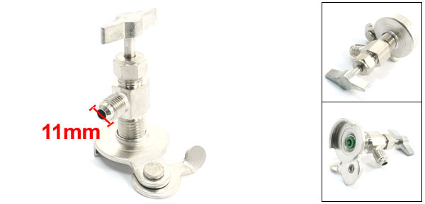 Product Name Can Tap Valve Model CH-340 Side Thread Diameter 11mm / 0.43" Bottom Thread Diameter 13mm/0.51" Pin Size 2.5mm/0.1" Green Side Inner Dia 6mm/0.24" Total Size 72 x 75 x 45mm / 2.8" x 3" x 1.8" (H*L*Max.W) Color Silver Tone Color Metal Weight 123g Package 1 x Can Tap Valve - Reviews