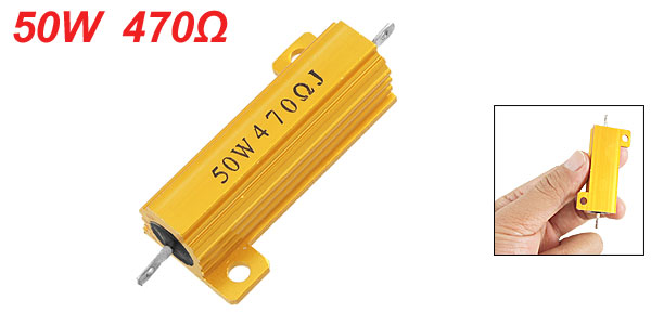 Product Name Aluminium Clad Resistor Power Rating 50W Resistance Value 470 Ohm Resistance Tolerance ± 5% Mounting Hole Dia. 0.4cm / 0.157" Mounting Hole Spacing 4cm / 1.6" Case Size (Exclude Tabs) 5 x 1.7 x 1.5cm / 2" x 0.67" x 0.59" (L*W*H) Overall Size (Approx.) 6.8 x 3cm / 2.7" x 1.2" (L*W) Case Material Aluminum Case Color Gold Tone Net Weight 26g Package Content 1 x Aluminium Clad Resistor - Reviews