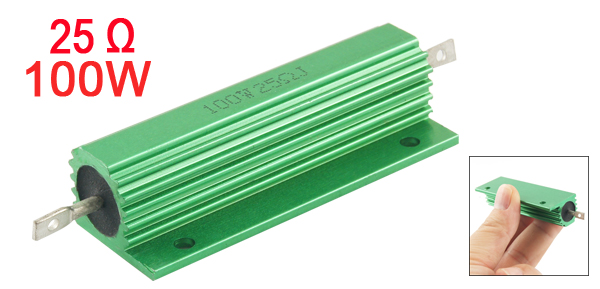 Product Name Aluminum Housed Resistor Resistance Value 25 Ω Power Rating 100W Resistance Tolerance ± 5% (J) Body Size 59 x 15mm/ 2.32" x 0.59" (L*D) Mounting Hole Diameter 1.8mm/ 0.07", 3mm/ 0.12" Total Size 81 x 21 x 15mm/ 3.2" x 0.83" x 0.59" (L*W*T) Casing Material Aluminum Color Green Weight 30g Package Content 1 x Aluminum Housed Resistor - Reviews