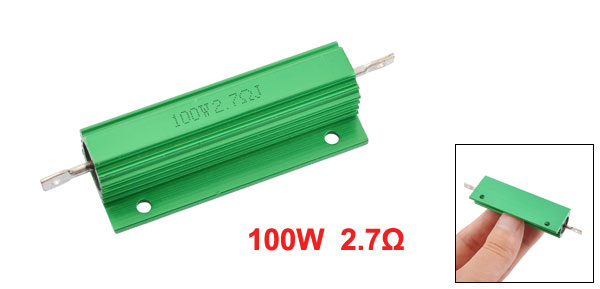 Product Name Aluminum Housed Resistor Resistance Value 2.7 Ohm Power Rating 100W Resistance Tolerance ± 5% (J) Body Size 59 x 15mm/ 2.3" x 0.6" (L*D) Mounted Hole Size 3.3mm/0.129" Total Size 82 x 21 x 17mm/ 3.2" x 0.8" x 0.7" (L*W*T) Casing Material Aluminum Color Green Weight 30g Package Content 1 x Aluminum Housed Resistor - Reviews