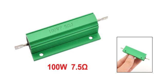Product Name Aluminum Housed Resistor Resistance Value 7.5 Ohm Power Rating 100W Resistance Tolerance ± 5% (J) Body Size 59 x 15mm/ 2.3" x 0.6" (L*D) Mounted Hole Size 3.3mm/0.129" Total Size 82 x 21 x 17mm/ 3.2" x 0.8" x 0.7" (L*W*T) Casing Material Aluminum Color Green Weight 30g Package Content 1 x Aluminum Housed Resistor - Reviews