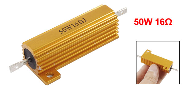Product Name Aluminum Housed Resistor Resistance Value 16 Ω Power Rating 50W Resistance Tolerance ± 5% (J) Body Size 49 x 15mm/ 1.9" x 0.59" (L*D) Mounted Hole Size 1.8mm/ 0.07"; 3mm/ 0.12" Total Size 72 x 22 x 15mm/ 2.8" x 0.86" x 0.59" (L*W*T) Casing Material Aluminum Color Gold Tone Weight 25g Package Content 1 x Aluminum Housed Resistor - Reviews