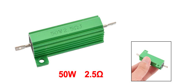 Product Name Aluminum Housed Resistor Resistance Value 2.5 Ohm Power Rating 50W Resistance Tolerance ± 5% (J) Body Size 49 x 15mm/ 1.9" x 0.6" (L*D) Mounted Hole Size 3.5mm/0.137" Total Size 72 x 22 x 15mm/ 2.8" x 0.9" x 0.6" (L*W*T) Casing Material Aluminum Color Green Weight 25g Package Content 1 x Aluminum Housed Resistor - Reviews